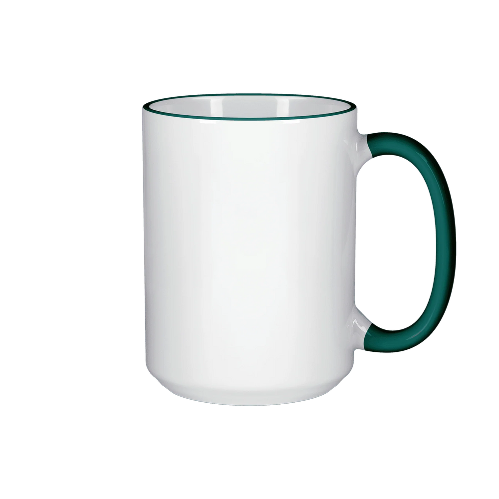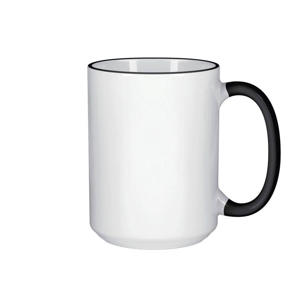 These 15 oz. colored rim and handle mugs are great for making your pictures stand out. Match the colors of your pictures with the colors available on these mugs.