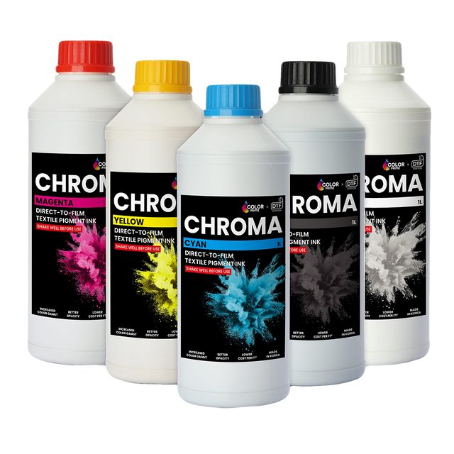- Ink Type: Color Prime® Chroma CMYK direct to film (DTF) ink