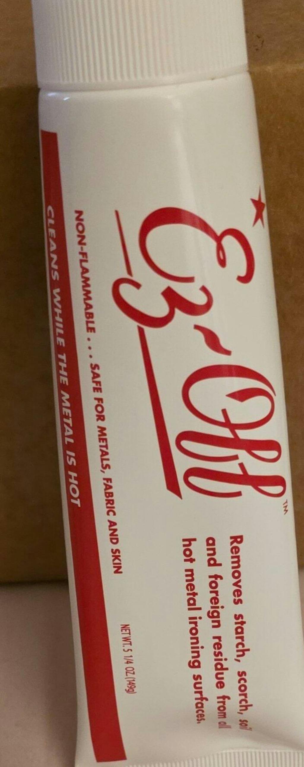 EZ-Off is non-flammable, safe for iron, fabric, and skin. This item comes in a 5 -1/4 oz. tube.