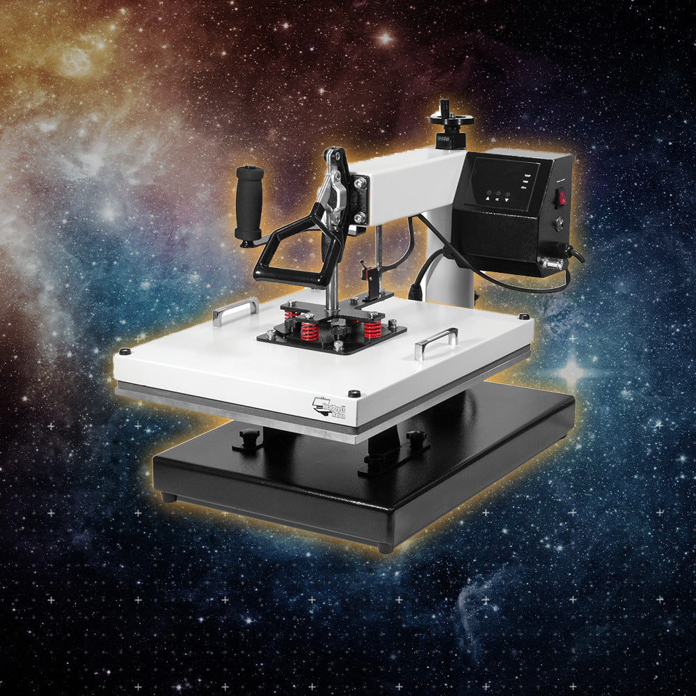 The simple fact that the heat press is of swing-away design, means that it is capable of floating directly above your t-shirt! This is perfect for not only regular heat transfers but also screen print and direct to garment (DTG) curing. The adjustable pressure knob lets you adjust the distance of the upper platen so you can pick how far away the heat press hovers. Just one of the many benefits of a swing-away heat press!